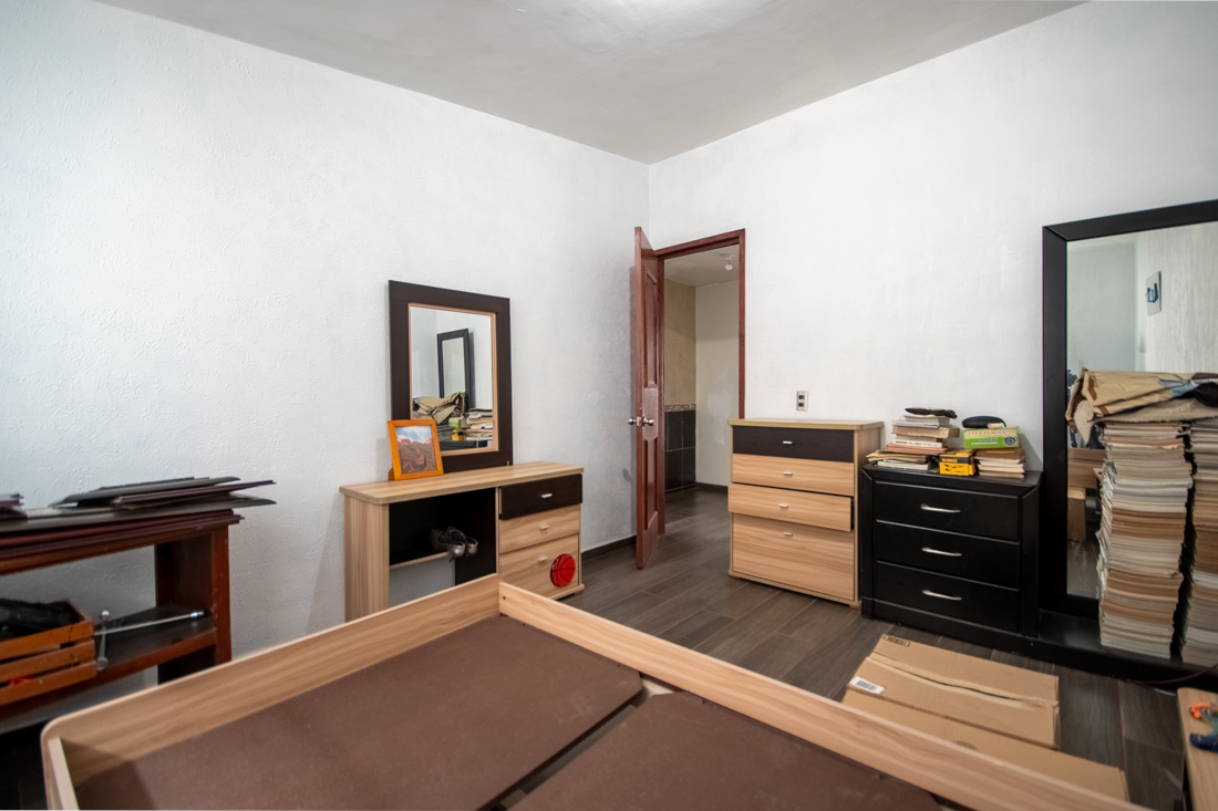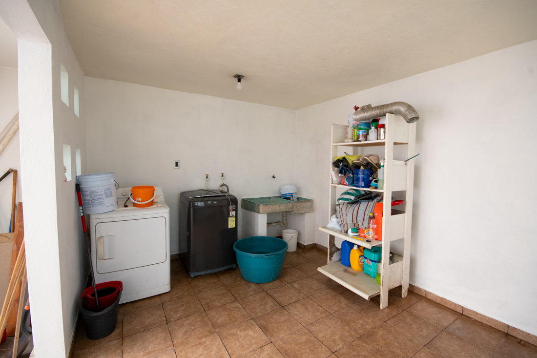 En la parte trasera de la casa encontrarás el patio con jardinera y un cuarto de lavado; sobre éste, otra habitación que te será de mucha utilidad. Te encontrarás también un pasillo que te será de mucha utilidad si quieres estacionar automóviles (tiene espacio hasta para 6) y al frente encontrarás la amplia fachada y recibidor.